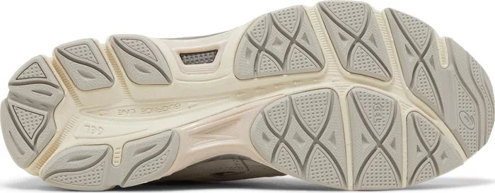 The ASICS Gel NYC 'Cream Oyster Grey' features an off-white mesh base with suede and synthetic leather overlays in varying shades of grey. ASICS' spiral logo adorns the tongue, while 'GEL' branding is embroidered on the back heel. The sneaker is mounted on a two-tone EVA midsole with shock-absorbing Gel inserts in the forefoot and heel. Underfoot, a podded rubber outsole provides optimal grip and a flexible ride.
