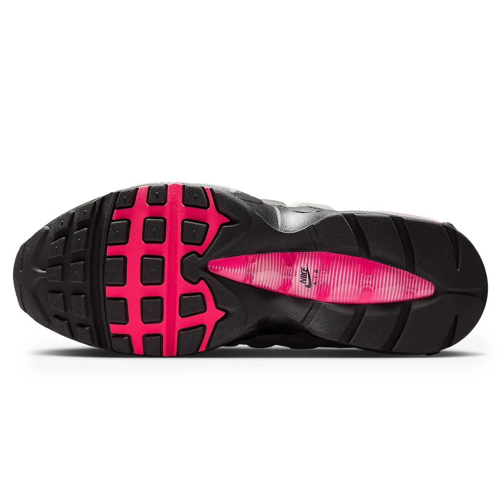 Big. Bold. Bounce. To celebrate 30 years of the iconic silhouette, the Air Max family is welcoming back the "Big Bubble" edition of the 95. With a design that stays true to the original, this iteration stacks the upper with rippling layers of synthetic leather and airy mesh that gradually fade from black to Medium Ash. Pops of Solar Red accentuate the lace loops, branding and Air units.