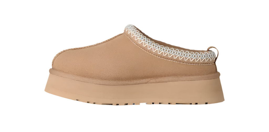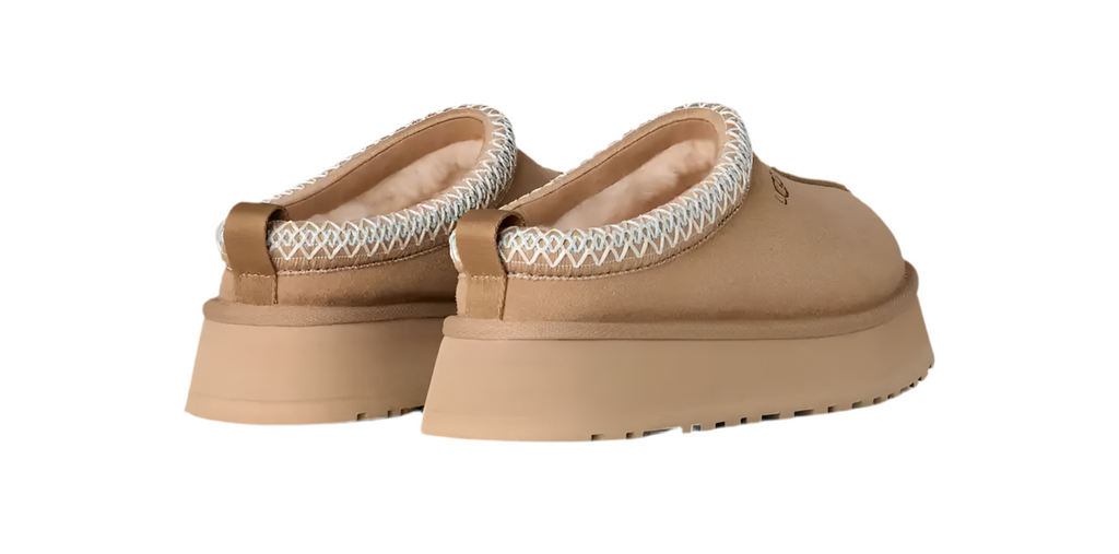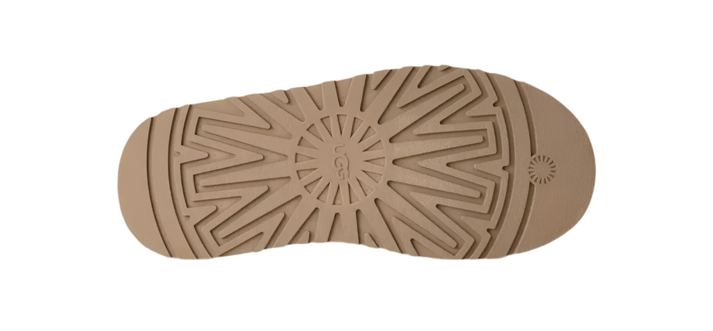 The Ugg Tazz Slipper Sand ‘W’ is a cozy and stylish slipper, blending comfort with a sleek aesthetic. It features a sand-colored suede upper that gives it a soft, neutral look, perfect for both casual indoor wear and quick outings.