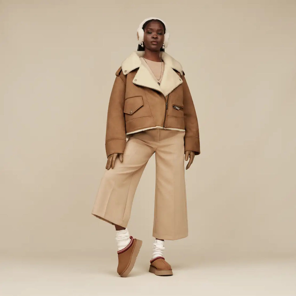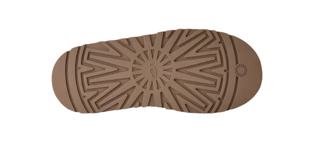 The UGG® Tazz II platform slipper combines comfort, warmth, and effortless style. Featuring a smooth suede upper lined with soft sheepskin, this cozy design provides plush comfort and easy wear. The lightweight sugarcane EVA outsole includes a subtle rocker shape for smooth, natural movement—perfect for everyday use.