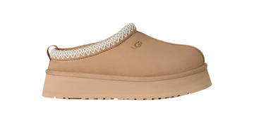 The Ugg Tazz Slipper Sand ‘W’ is a cozy and stylish slipper, blending comfort with a sleek aesthetic. It features a sand-colored suede upper that gives it a soft, neutral look, perfect for both casual indoor wear and quick outings.